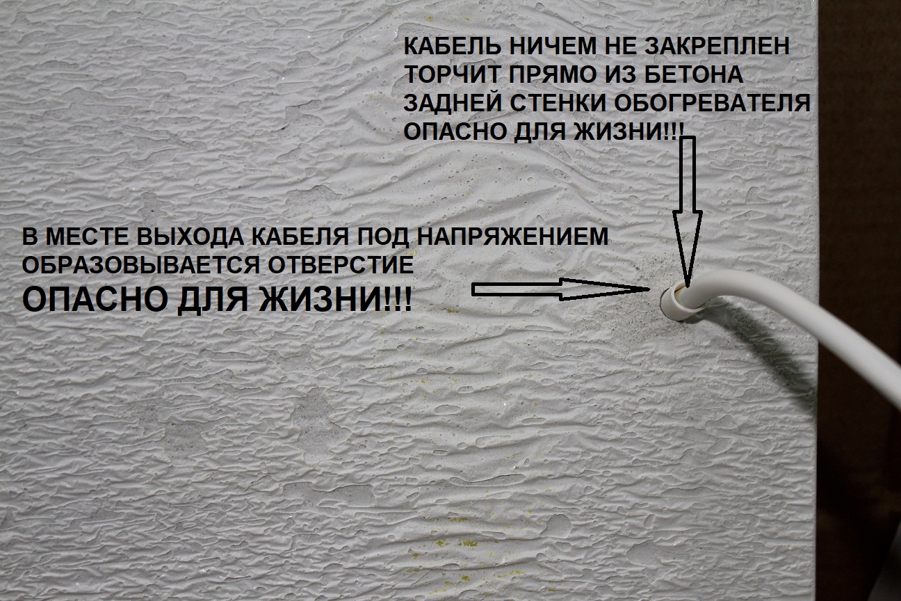 И еще об отсутствии заземления «оливиновых обогревателей». Наверное, чтобы не устанавливать в обогреватель заземление (большие расходы при производстве) производитель в ТУ написал: материал из которого изготовлены обогреватели является диэлектрическим - полная ложь. Не может бетон по своим техническим характеристикам претендовать на роль диэлектрика (в составе бетона вода, песок, цемент). Бетон при влажной погоде аккумулирует влагу. Производитель присвоил себе роль «эксперта», имеющего право без проведения экспертизы присваивать классификацию диэлектрика строительным материалам.